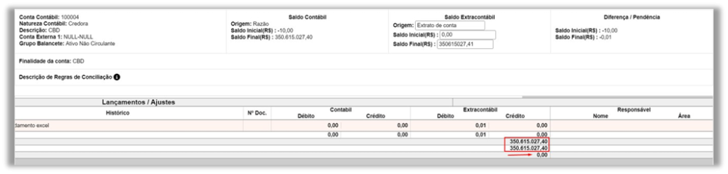 O lançamento dos ajustes deve sempre respeitar o sinal da capa. Quando a capa estiver negativa, todos os valores de ajuste, independentemente de serem lançados em Crédito ou Débito, deverão ser informados com sinal negativo, garantindo que o resultado final represente corretamente a posição da conta.