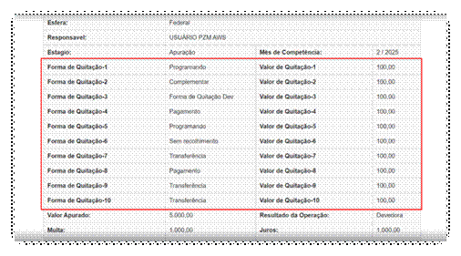 Reabertura com guias concluídas: Ao realizar reaberturas com guias complementares concluídas, o sistema irá manter o valor total (que é a soma da apuração e quitações + as guias complementares concluídas) e manterá as guias inseridas nas complementações para somatório.