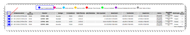 A exibição do status acata a ordem de criação das complementares, dessa forma, se a primeira complementar está pendente, o status na apuração exibirá “Pendente”. Caso esteja concluída ou anulada, a exibição considerará a próxima complementar em andamento e assim sucessivamente.