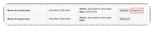 A reprovação das capas será possível limitado ao status da capa, aguardando conferente/aguardando aprovação.
