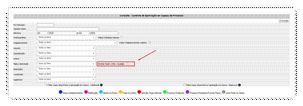 As guias complementares podem ser exibidas nas telas de consulta de checklist e na consulta de capas de processo.