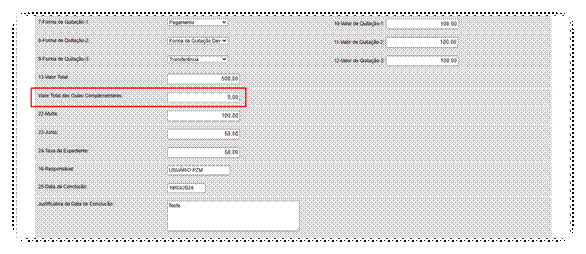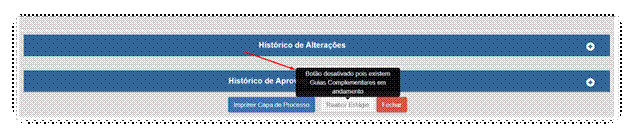 Quando gerarmos capas para guias complementares, o sistema reabre o estágio de pagamento, caso esteja concluído. Quando isso ocorrer, será exibida uma mensagem para o usuário que está manipulando a complementar que gerou a reabertura:
