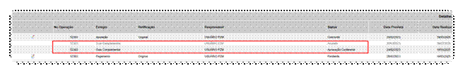 Cada controle complementar deverá gerar, por padrão, um fluxo de aprovação, refletindo o exato valor gerado na complementação e deverá exibir um identificador nominal “Complementar” no campo “Resultado da Operação”: