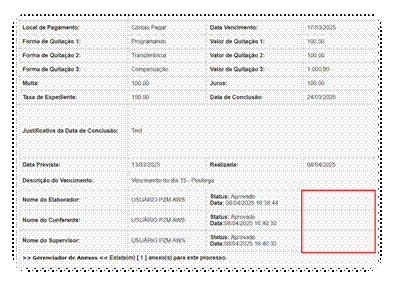 Ao realizar o processo de criação, a data realizada acatará a data de conclusão da atividade (capa de aprovação).