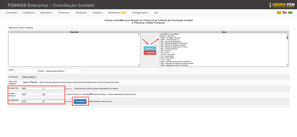 • Ano/Mês Checklist: informe o mês que está sendo gerado;